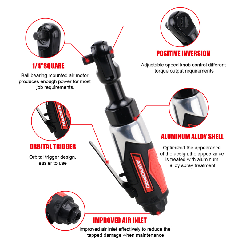 The ball bearing-mounted air motor delivers ample power for diverse job requirements.