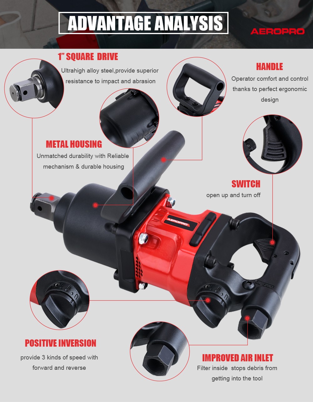 1"impact wrench is designed for removal of truck,bus work,truck repair,heavy equipment bolts and farm equipment.