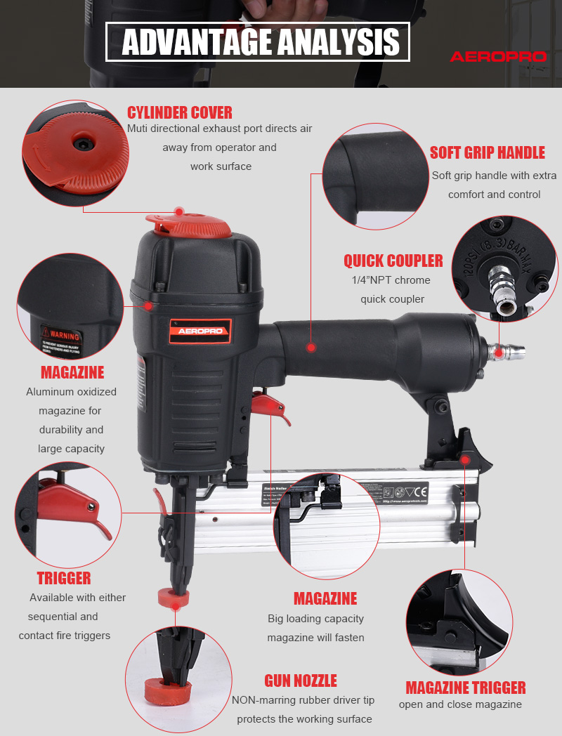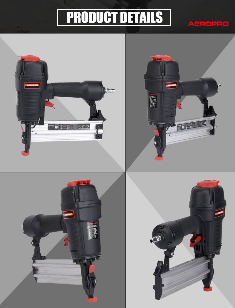 Drives 16Ga. finish nails 3/4 inch to 2 inch.