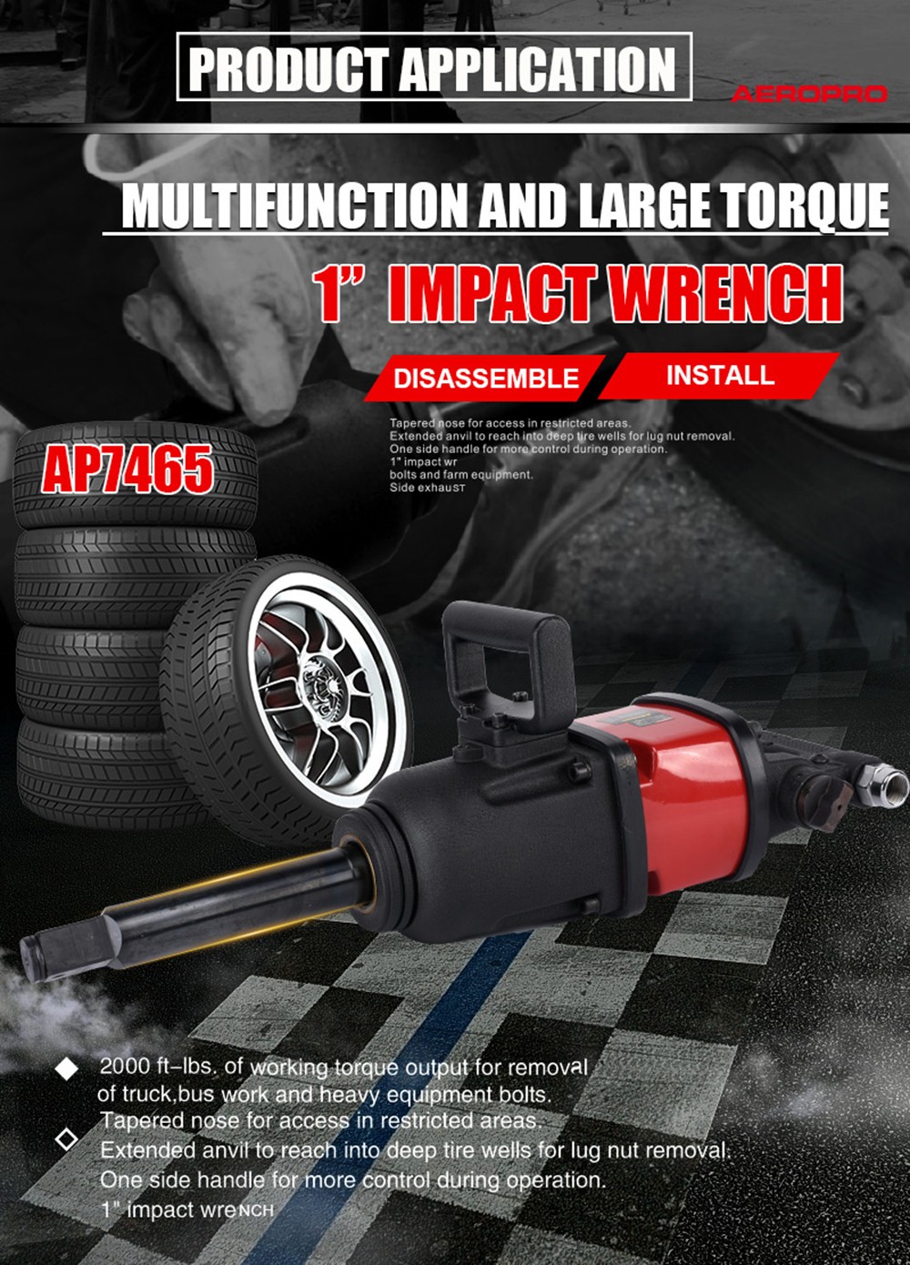 2000ft-lbs.of working torque output for removal of truck,bus work and heavy equipment bolts.