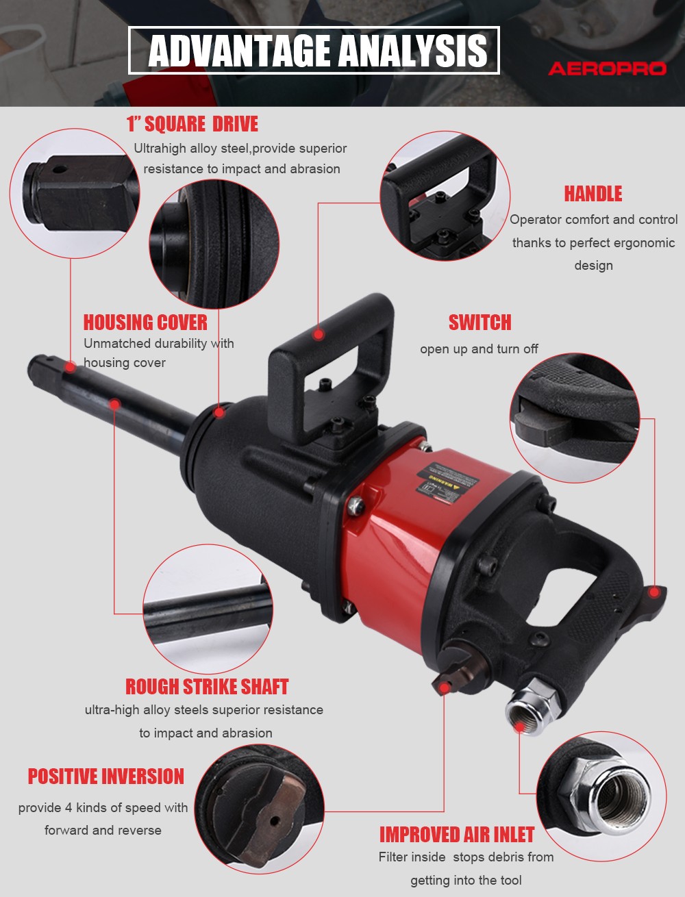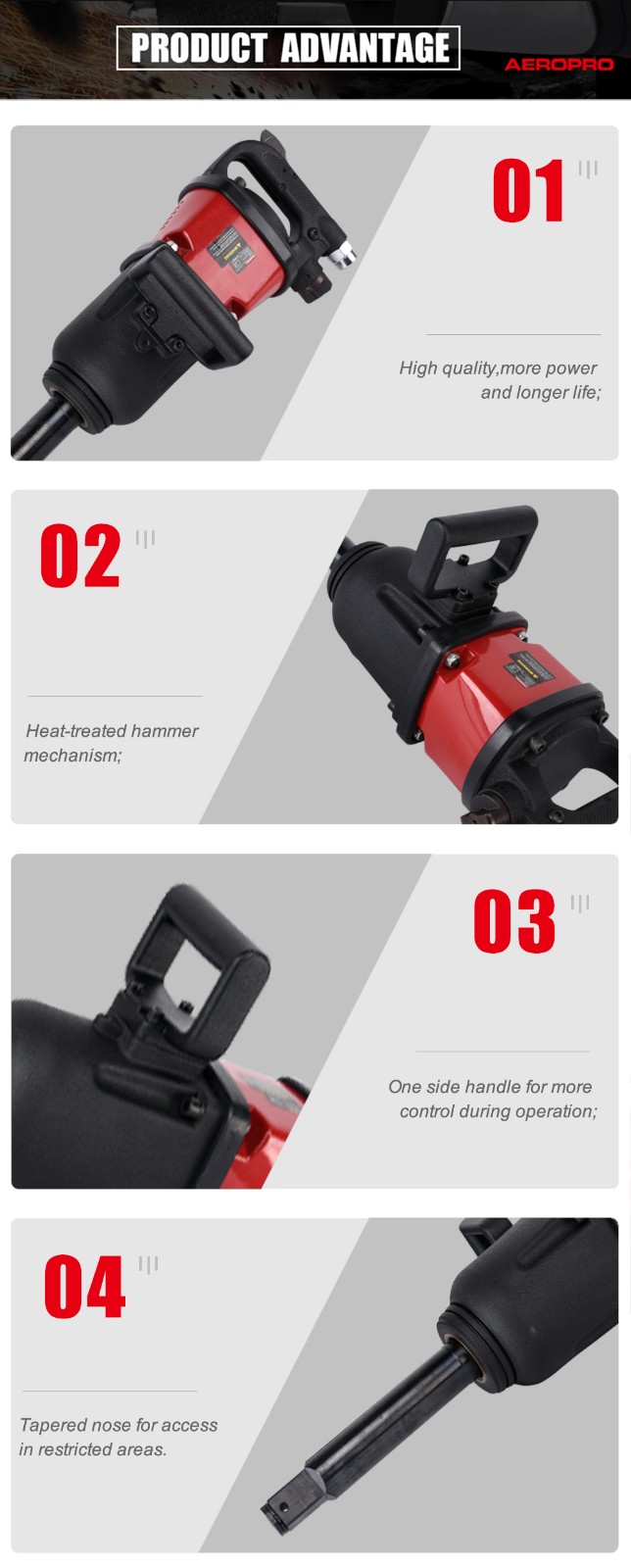 1'' impact wrench is designed for removal of truck,bus work,truck repair professional,heavy equipment bolts and farm equipment.