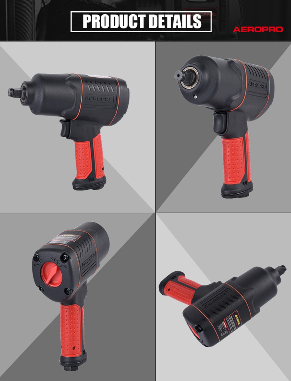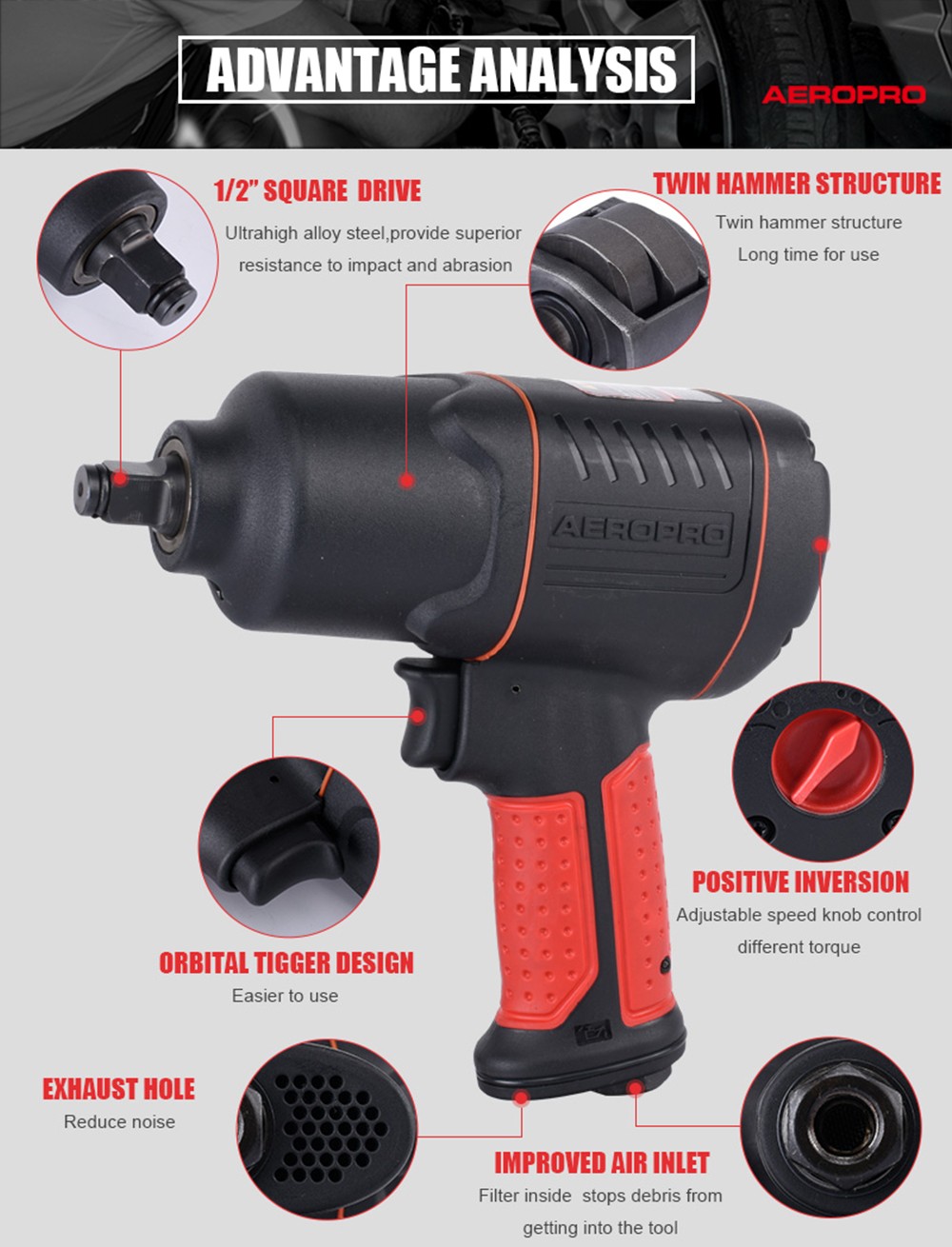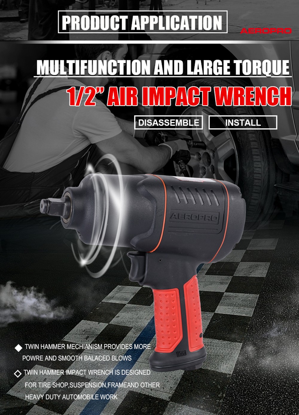 Description for the 1/2 inch air impact wrench with twin hammer for auto maintenance:
