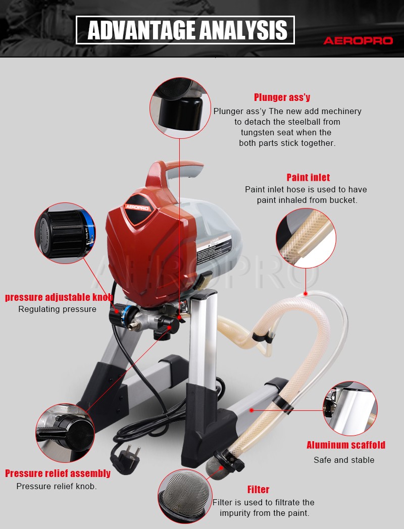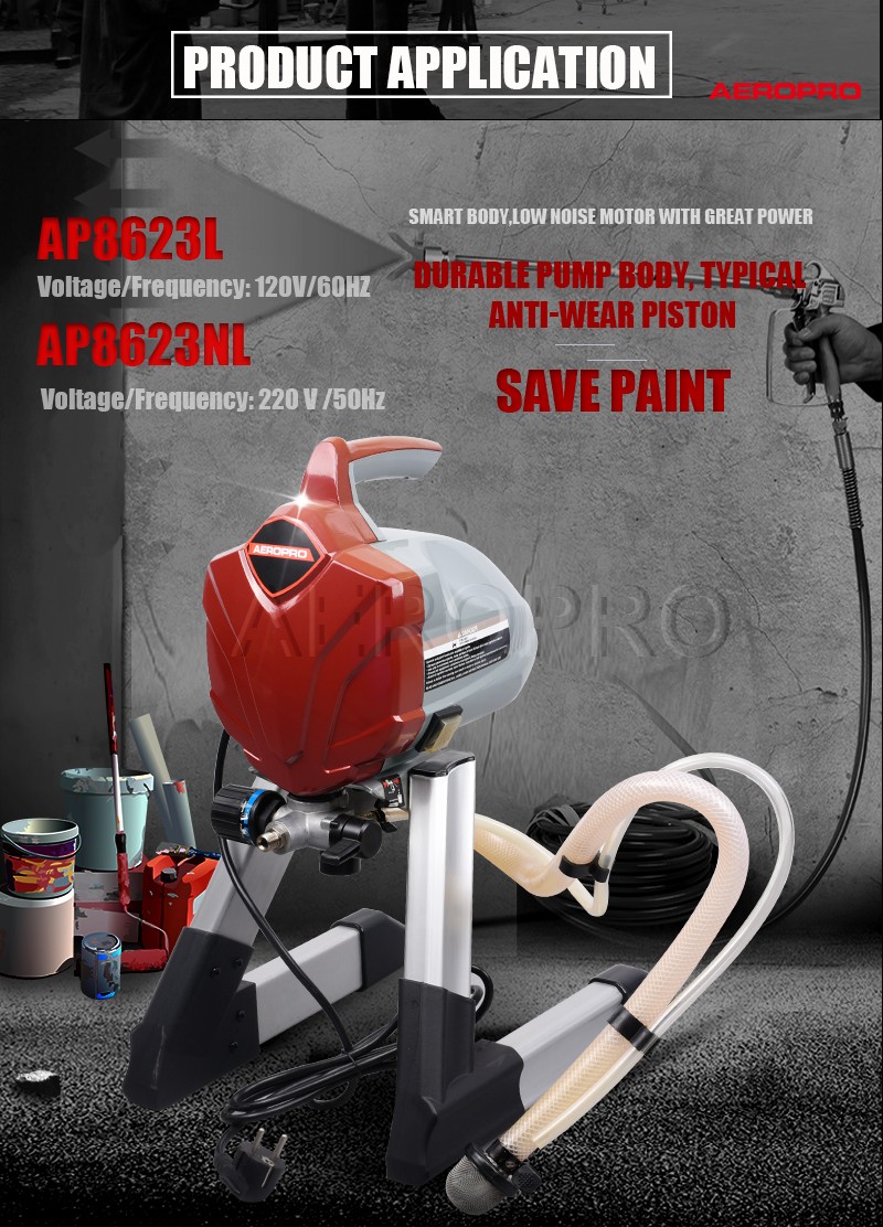 Includes all metal airless spray gun W/517 spray tip and guard.