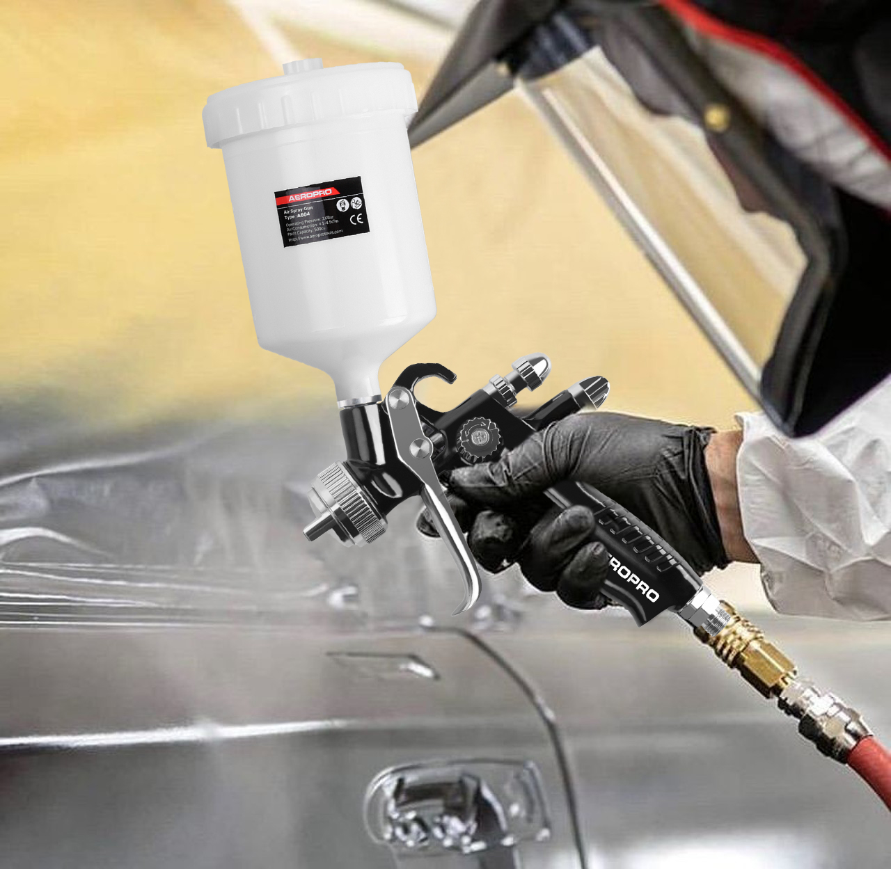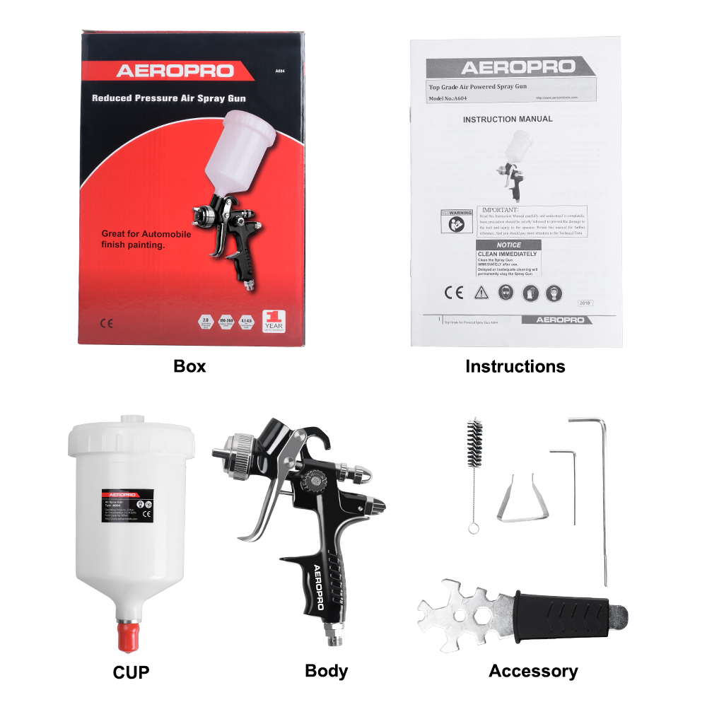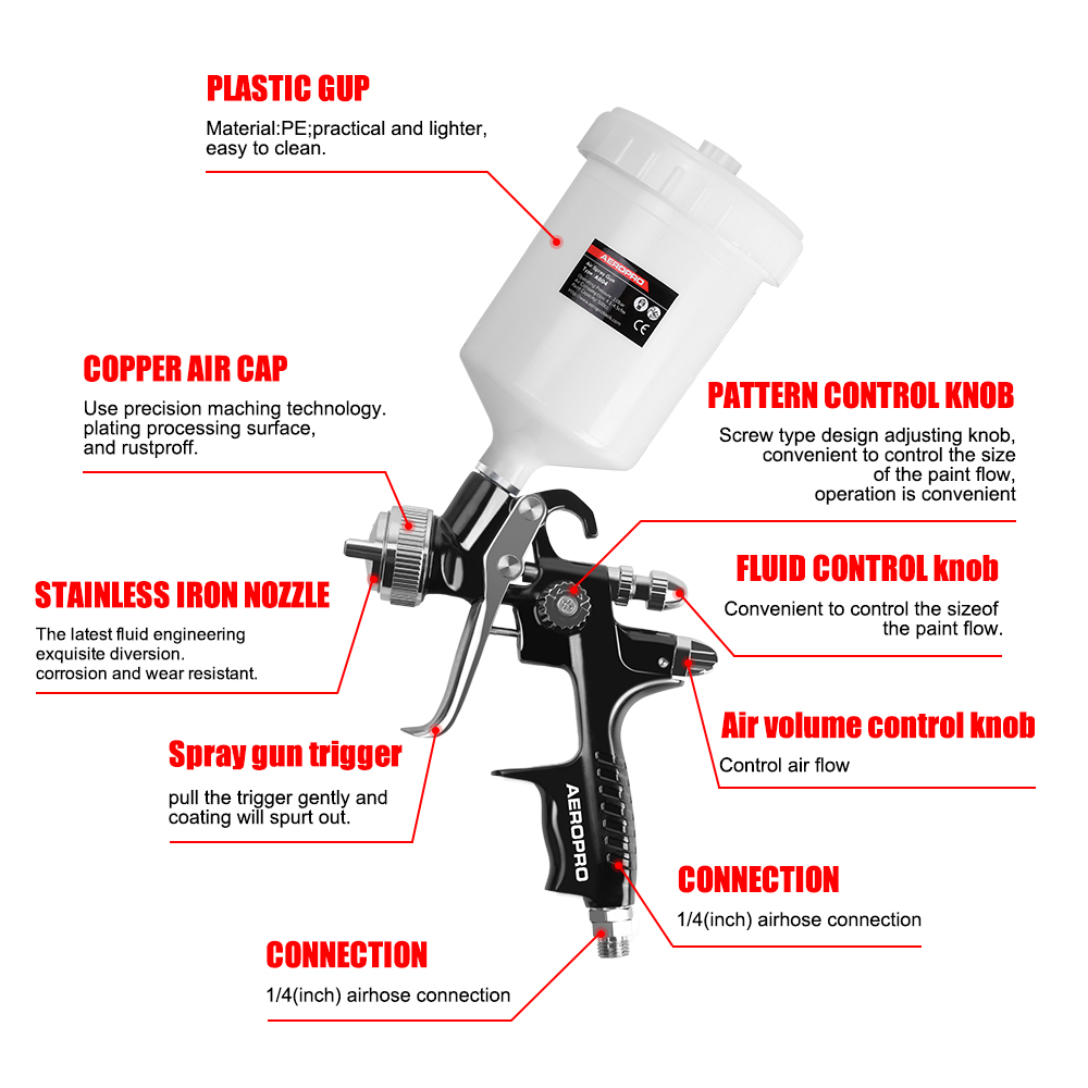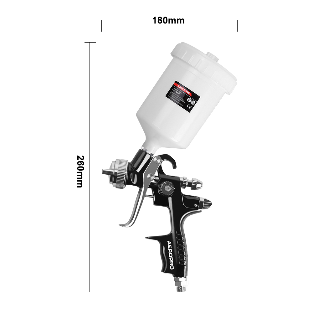 • Durable aluminum forged gun body with precisely machined air cap assembly.