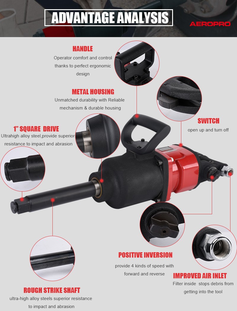 6. 1'' impact wrench is designed for removal of truck,bus work,truck repair professional,heavy equipment bolts and farm equipment.