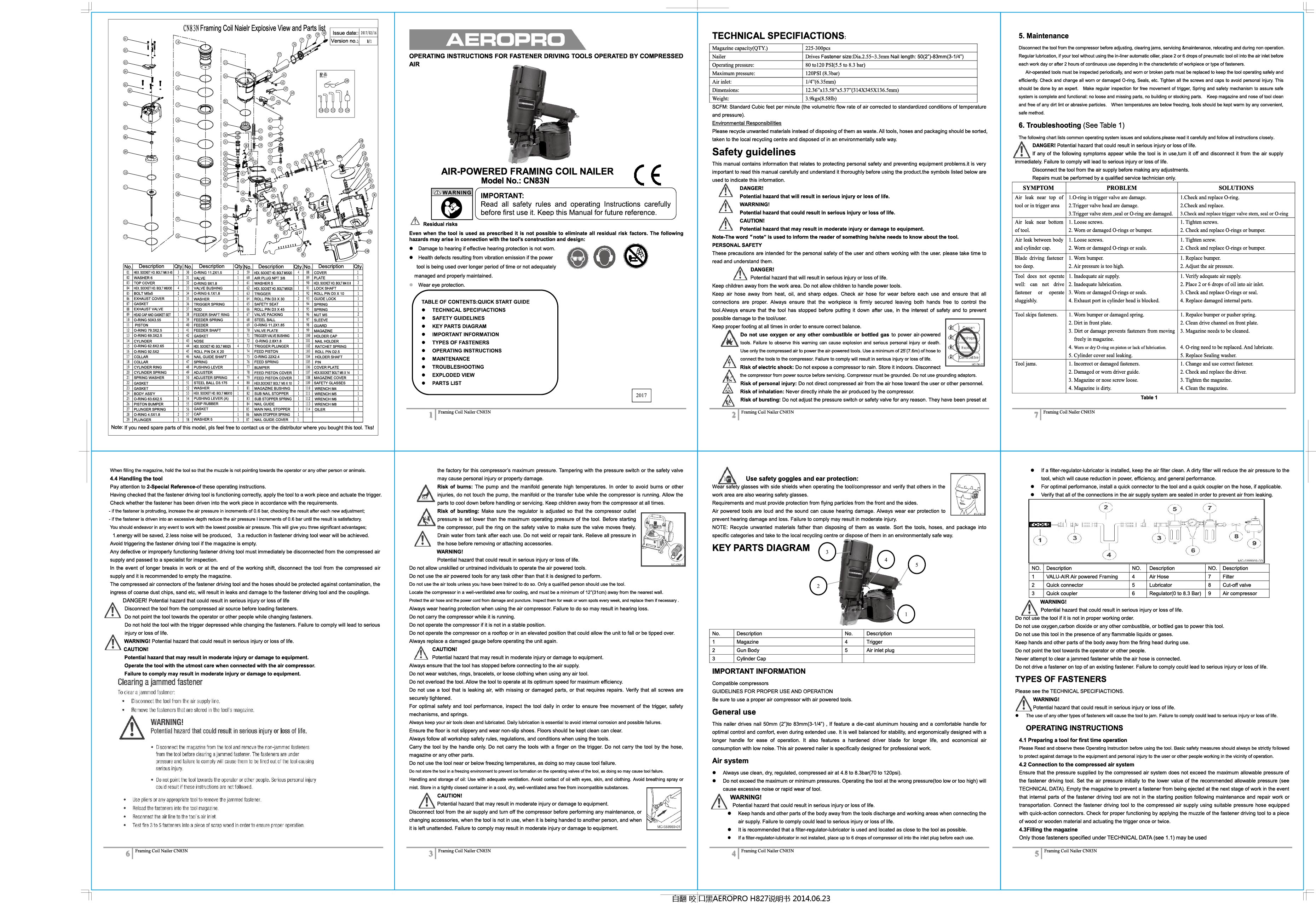 The tool drives 15-Degree wire collated coil framing nails 2-lnch by 0.099-Inch to 3-1/4-Inch by.131-lnch.